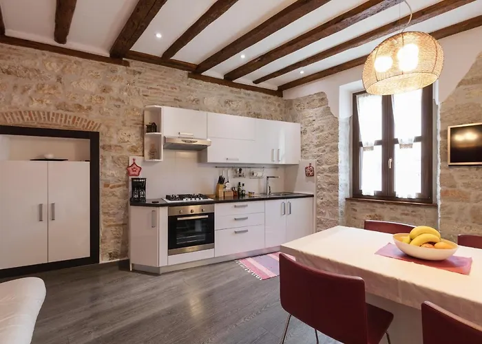 U potpuno opremljenoj kuhinji nalaze se hladnjak, pećnica i posuđe, kao i aparati za pripremu kave/čaja za maksimalnu udobnost gostiju. Autobusno stajalište u Rovinju udaljeno je oko 10-minutnom šetnjom od Apartmana Arca.